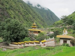 Gom Kora, located 22km north of Trashigang, is a sacred temple and pilgrimage site. Originally called Gomphu Kora, it is known for its association with Guru Rinpochhe, who meditated here in the 8th century to defeat the evil spirit Myongkhapa. The site was later developed into a shrine by Gongkhar Gyal in the 10th century, expanded by Terton Pema Lingpa in the 14th century, and renovated in the 15th century by Yongzin Ngagi Wangchuk.